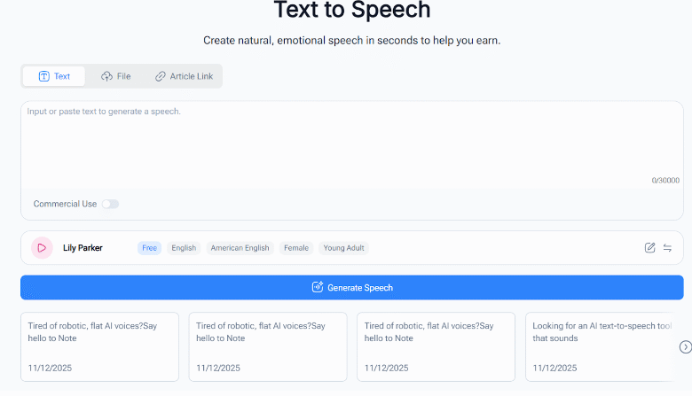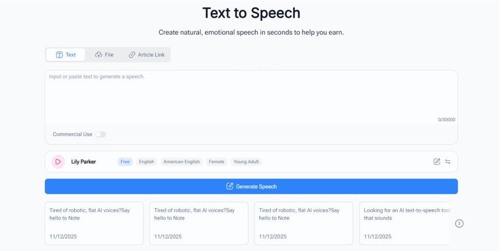 NoteGPT Text to Speech provides a practical solution. It allows educators and creators to turn written content into professional-sounding audio quickly and easily. Whether you’re producing one lesson or an entire curriculum, Text to Speech technology streamlines the process, reduces stress, and ensures students receive a consistent learning experience.
