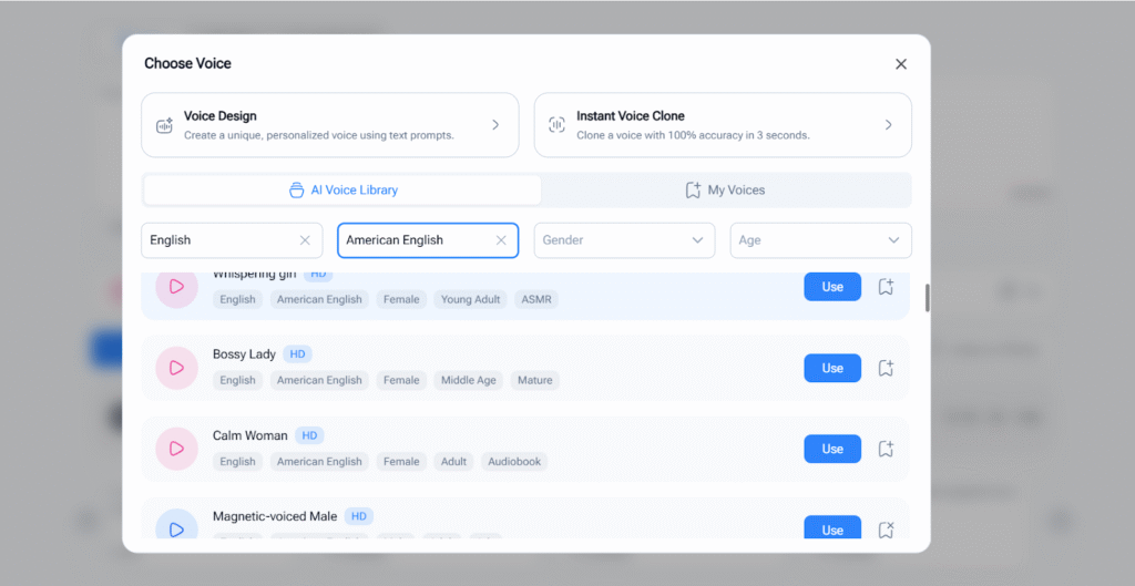 • Choose voices that feel engaging and professional