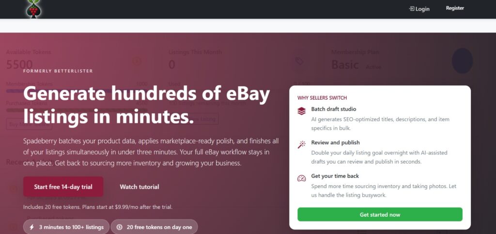 Among the automation tools available to resellers today, Spadeberry stands out because it was built specifically for eBay workflows. Instead of functioning as a general AI writing tool, it is designed around the structure of eBay categories, item specifics, resale pricing patterns, and the needs of high volume sellers.