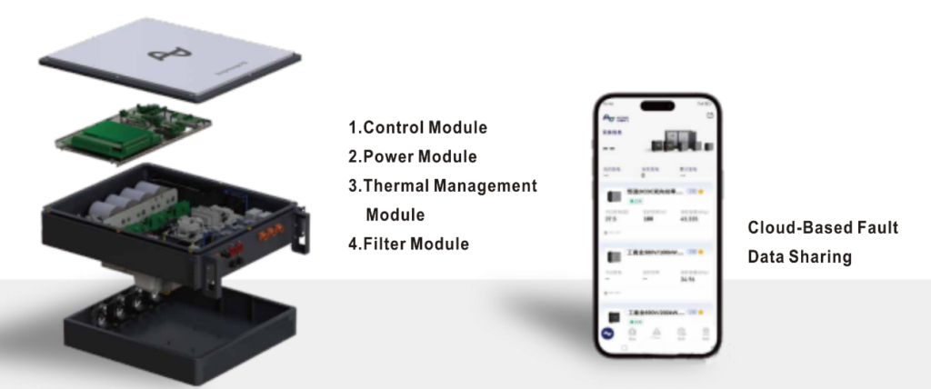 1. Employs a modular system architecture with independently assembled core modules, allowing for minute-level disassembly and repair by end-users. This design is ideal for commercial and industrial storage/charging operation and maintenance scenarios, ensuring low maintenance costs. Component selection prioritizes durability and lifespan, avoiding low-cost options in favor of high-performance, long-life components such as IGBT modules, film capacitors, and laminated busbars.