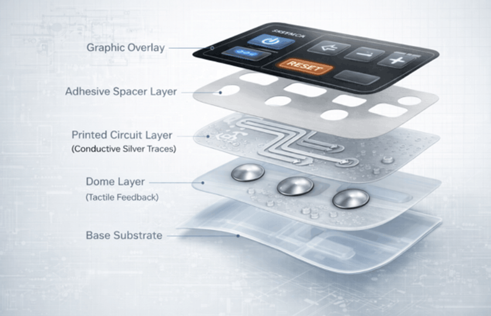 Membrane switches rely on printed conductive traces rather than discrete wiring. This printed electronics approach offers advantages in consistency and scalability.