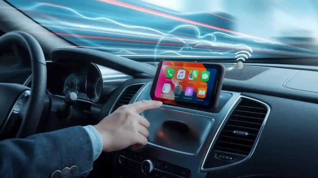 Before, you had to plug your phone into a USB cable to use CarPlay. This is called wired CarPlay. But now, Wireless CarPlay lets you connect your phone without any cable. It uses Bluetooth and Wi-Fi to connect automatically.